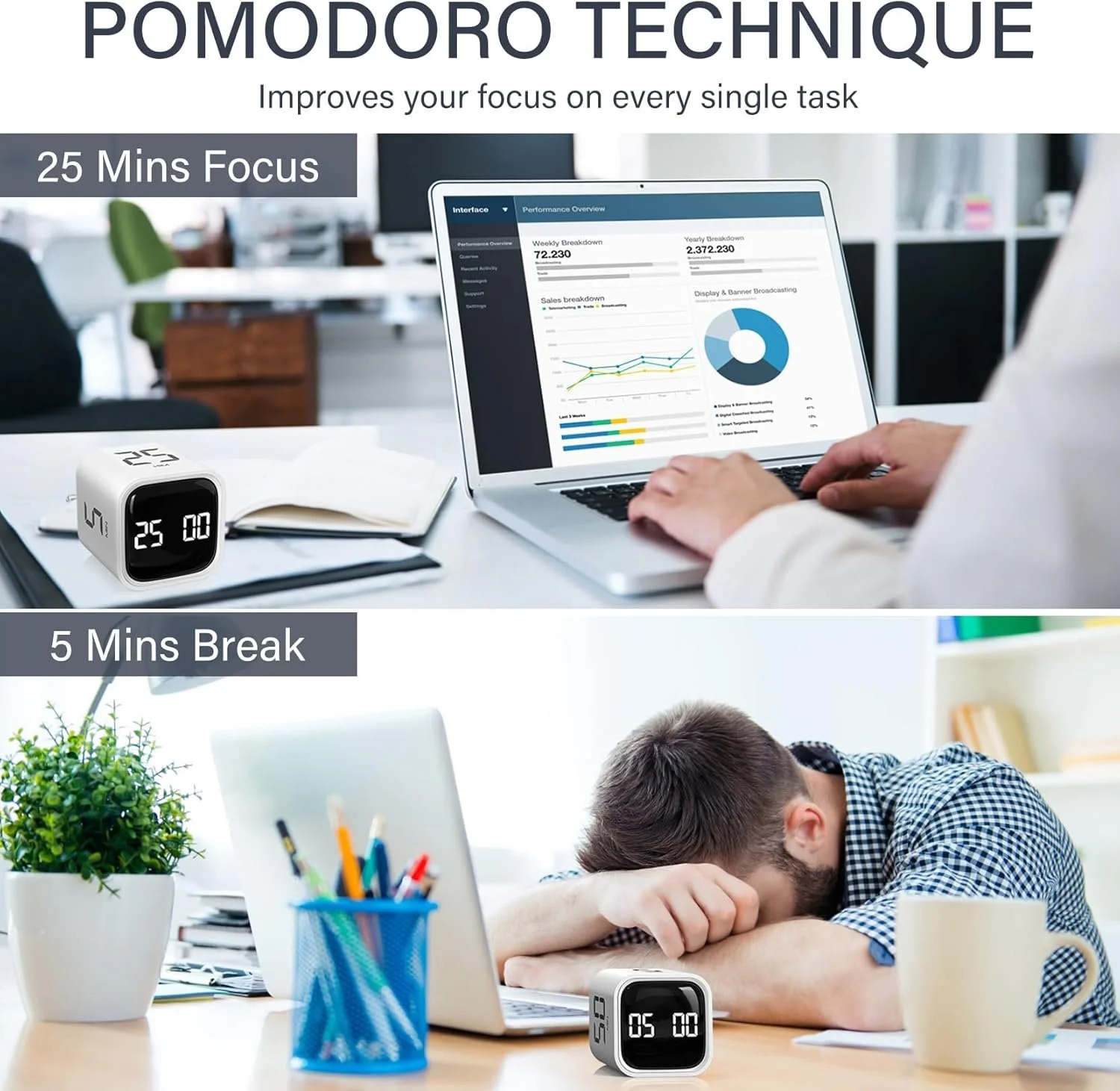 Want 25 minutes of focused work? Place it on the “25” side. Need a quick 5-minute breather? Flip it again. The timer does the rest. A soft beep signals the end, and you know it’s time to reset or rest.